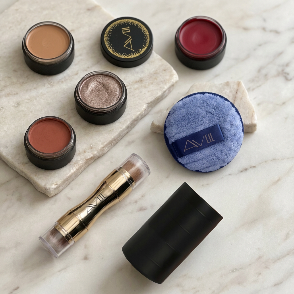 Your full routine, elevated. The Aveil 4-Tier Tower gives you the freedom to curate four of your must-have makeup products in one minimal, space-saving stack. Mix and match shades and products — highlighter, bronzer, crème shadow, foundation, you name it. Designed to twist together smoothly, this tower is the definition of customisable luxury for the beauty lover who wants more in one place. Paired together with our reusable mini makeup pad and our magic makeup tool.